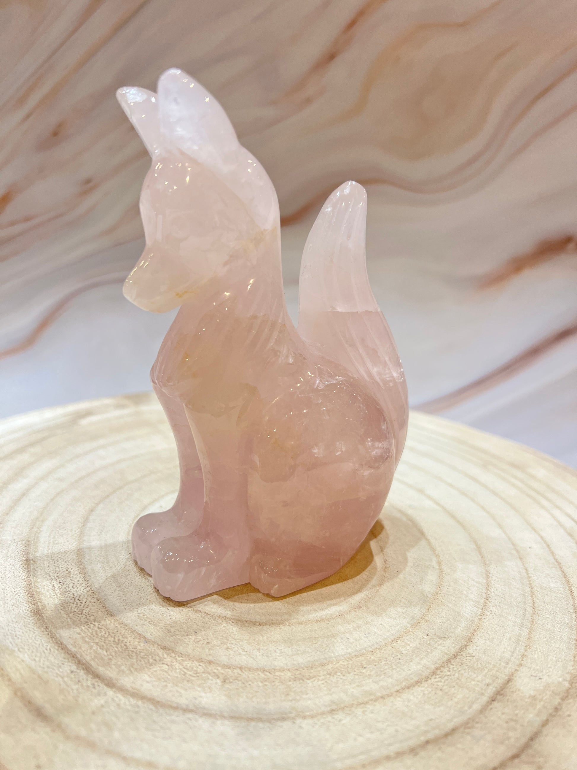 ✨ Eigenschappen: Prachtige vos van rozenkwarts, de steen van liefde, harmonie en zachtheid. Een krachtig symbool van wijsheid, bescherming en intuïtie.