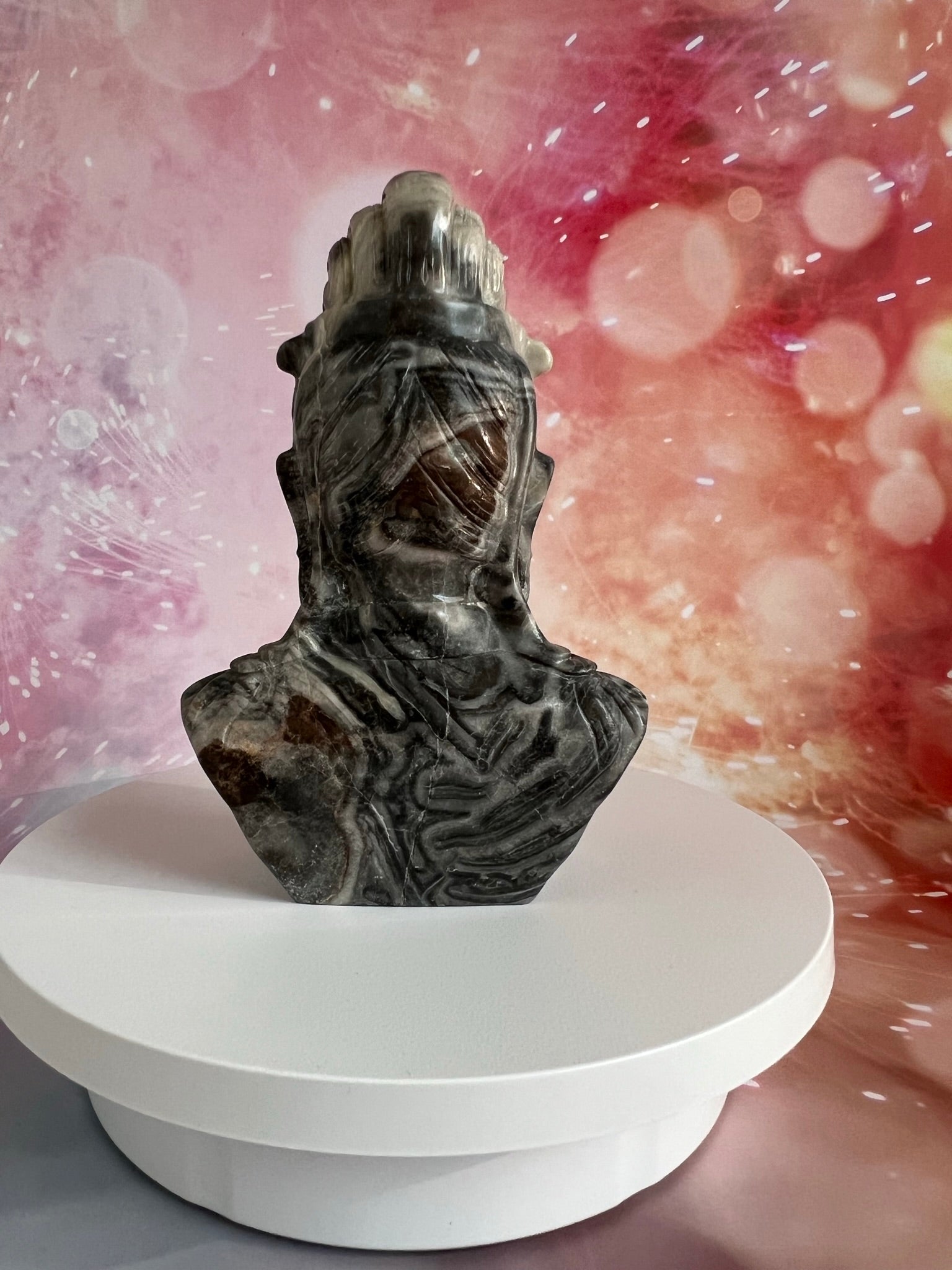 * Spiritueel: Schelp Steen, ook bekend als Seleniet, heeft een zeer zuiverende en beschermende energie. Deze Godin kan helpen bij het reinigen van de aura en het bevorderen van een vredige en rustige geest.